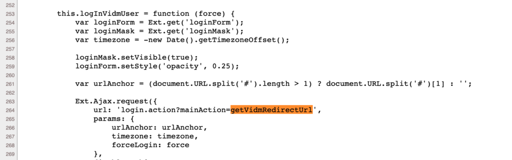 View the source of the page and search for getVidmRedirectUrl