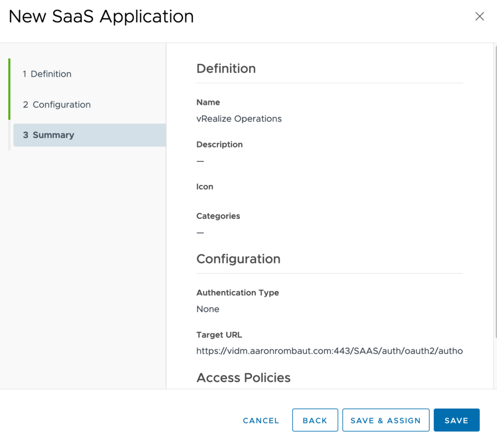 Workspace ONE Access FQDN: vidm.aaronrombaut.com