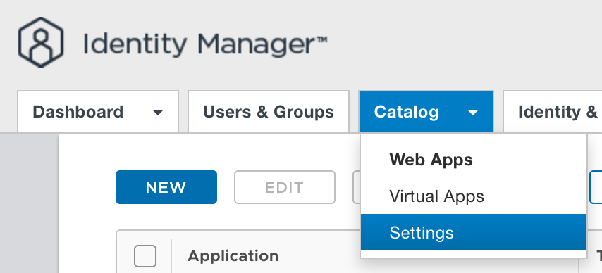 On the Workspace ONE Access appliance, click the arrow on Catalog and choose Settings.