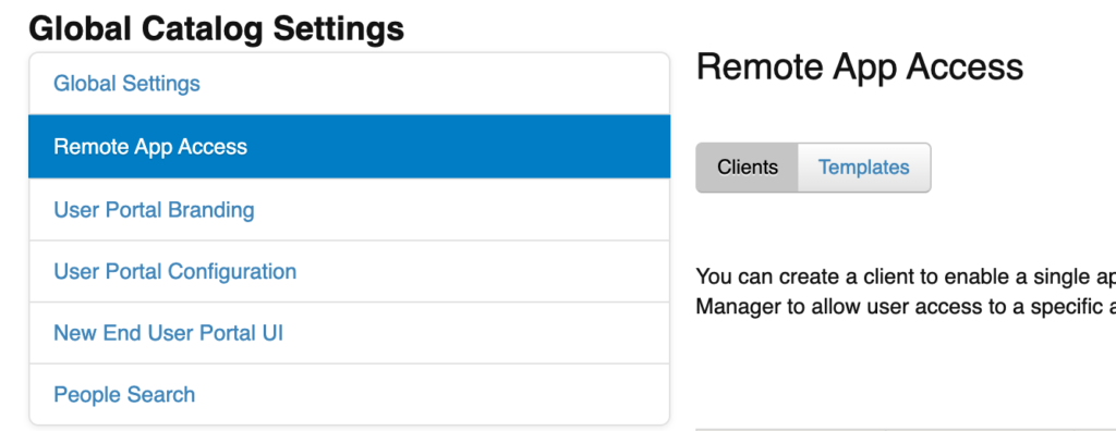 Under Global Catalog Settings, click Remote App Access.