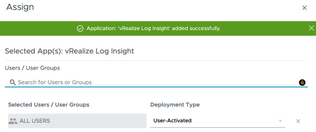 Click SAVE & ASSIGN. Type in Users / User Groups as appropriate.