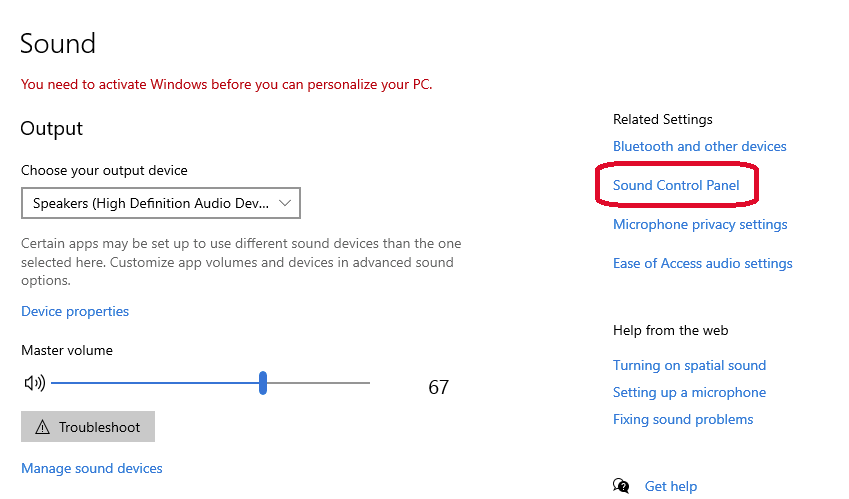 Open the Sound Control Panel.