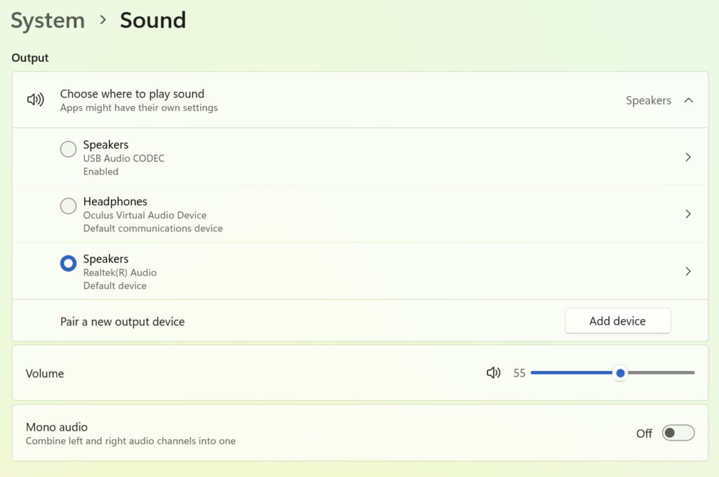 At this point, your System audio is configured. There are examples on how to configure software application audio at the end of this post.