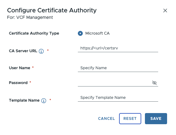 VCF Operations UI does not show Password or Certificate information for VCF Management