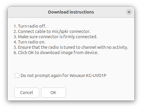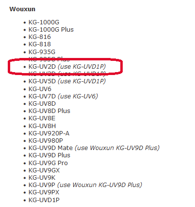 In my case, for this demonstration, I am using a Wouxun KG-UV2D handheld transceiver (HT). From the compatibility list, I will use the KG-UVD1P model.