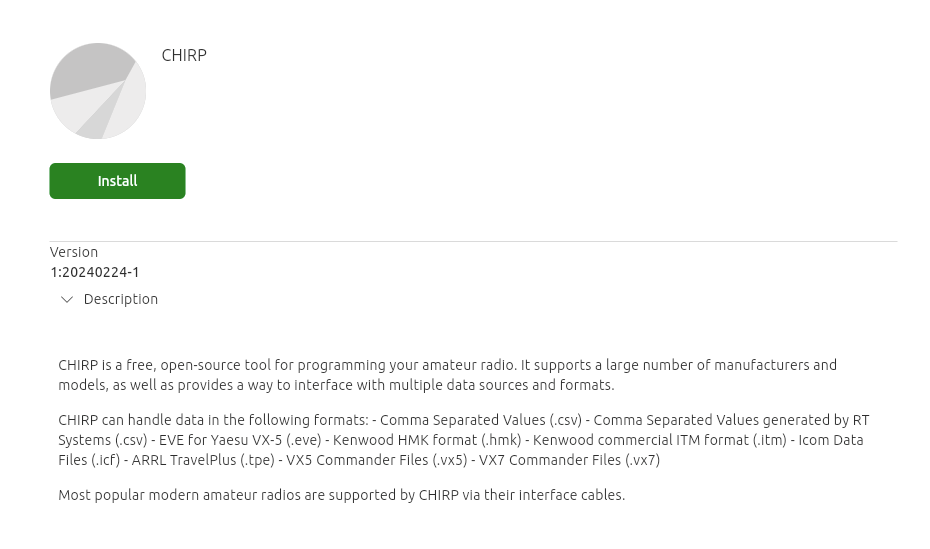 Just a note, here. App Center (snap-store) actually has a result for CHIRP in the list of Debian packages.