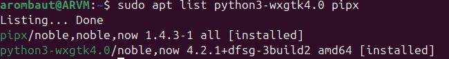 Optionally, you can verify the components are installed by replacing the install with list in the apt command.