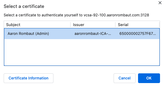 - Make sure the vCenter Server has a trusted TLS certificate configured. (https://docs.vmware.com/en/VMware-vSphere/7.0/com.vmware.vsphere.authentication.doc/GUID-BD70615E-BCAA-4906-8E13-67D0DBF715E4.html)