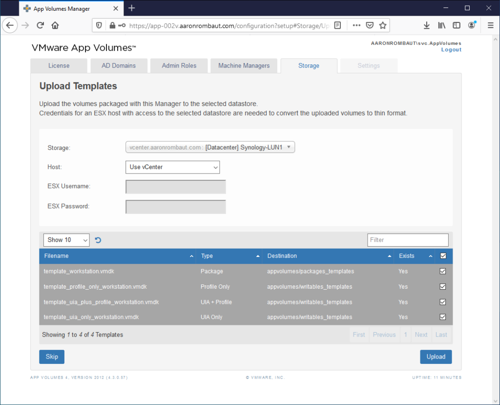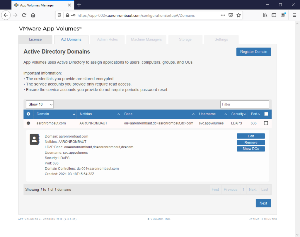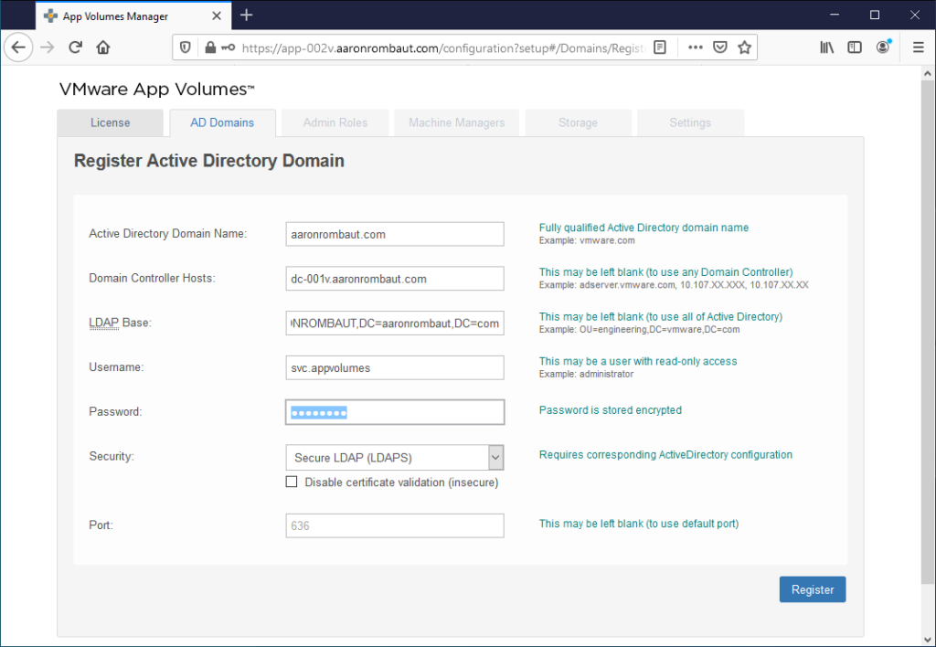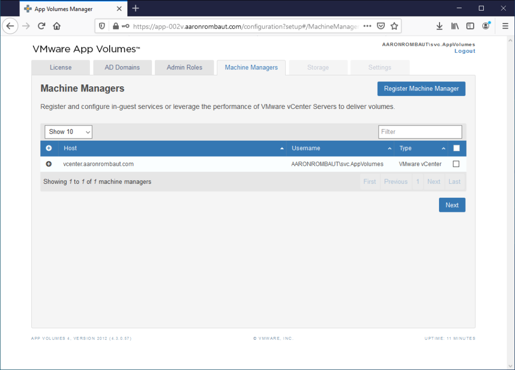 At least one App Volumes Manager should be installed before following this page. Here is the page for Installing VMware App Volumes Manager.