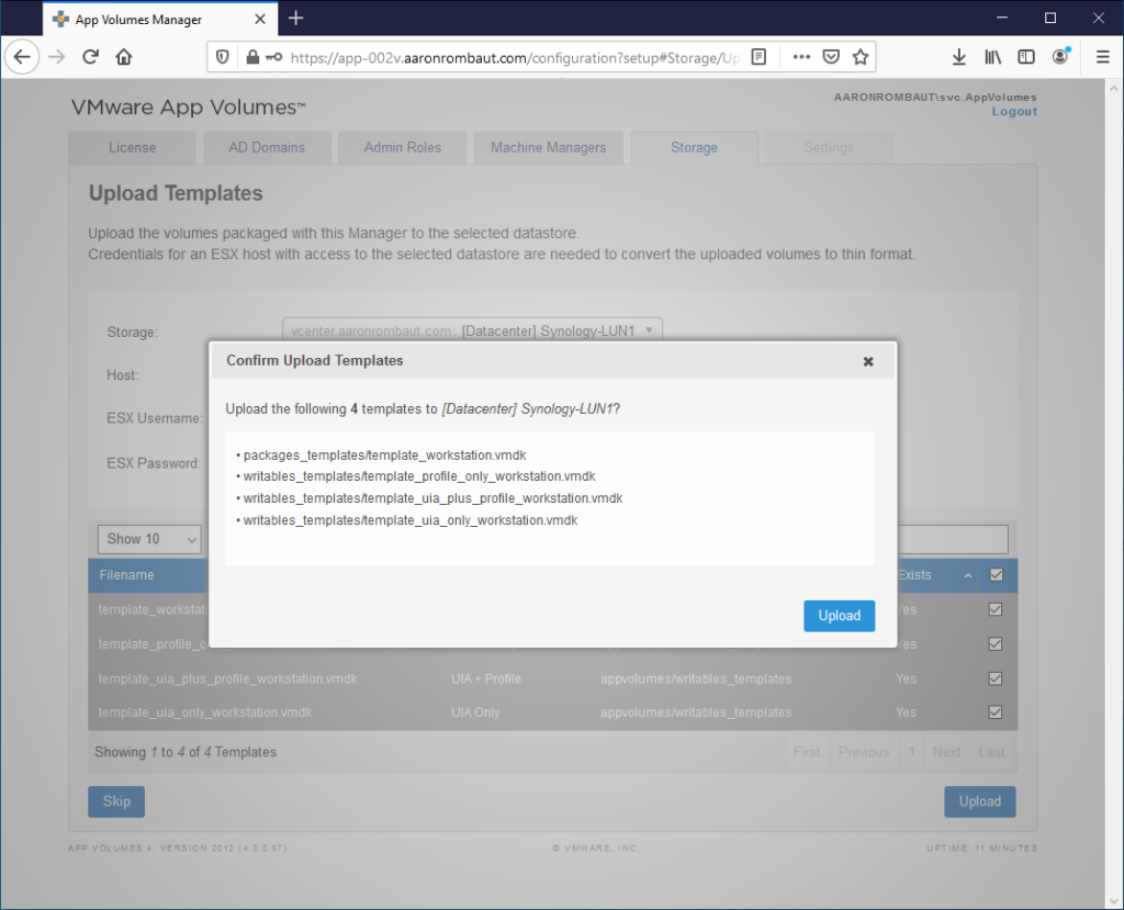Click the Upload button in the Confirm Upload Templates window.