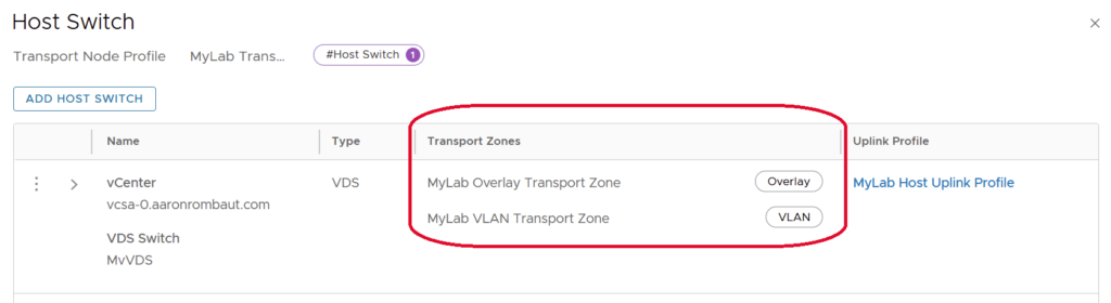 For Host Transport Nodes, attach both Transport Zones in the Transport Node Profile. Without the VLAN Transport Zone, NSX VLAN segments will not be accessible on the host.