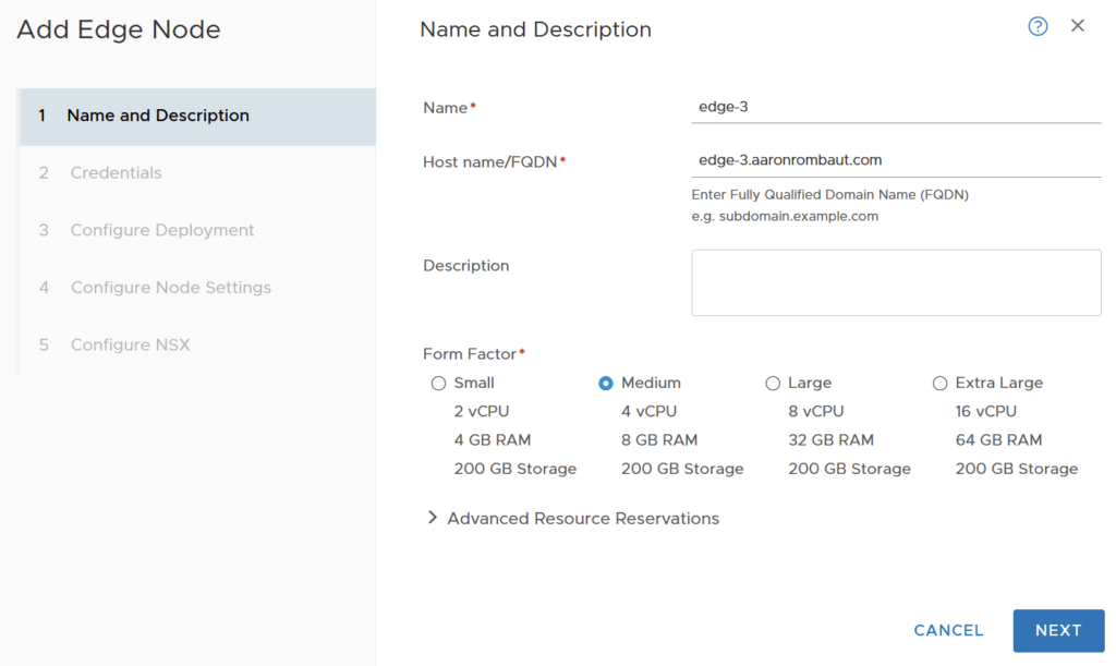 Provide a Name, Host name/FQDN, optional Description, and select the appropriate Form Factor.