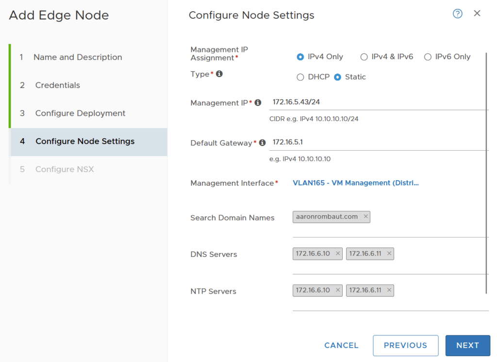 Ok, this is where the rubber meets the road. Assuming that the above has all been configured, the Edge Transport Node creation should deploy successfully.