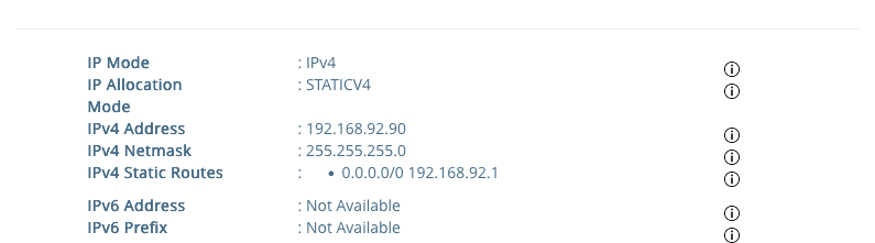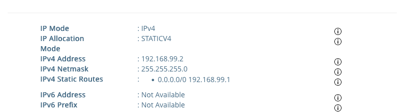 NIC 2 : Management network interface (IPv4 Address; IPv4 Netmask; IPv4 Static Routes)