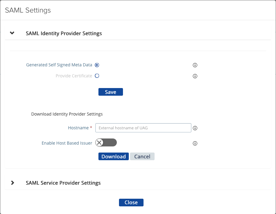 - On the UAG, configure the SAML Identity Provider Settings.