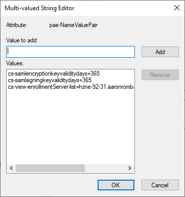 cs-samlencryptionkeyvaliditydays=number-of-days cs-samlsigningkeyvaliditydays=number-of-days