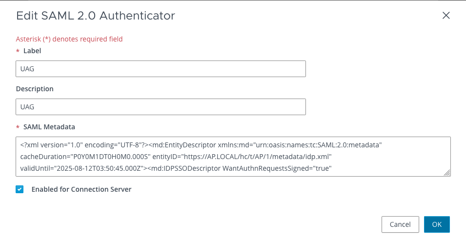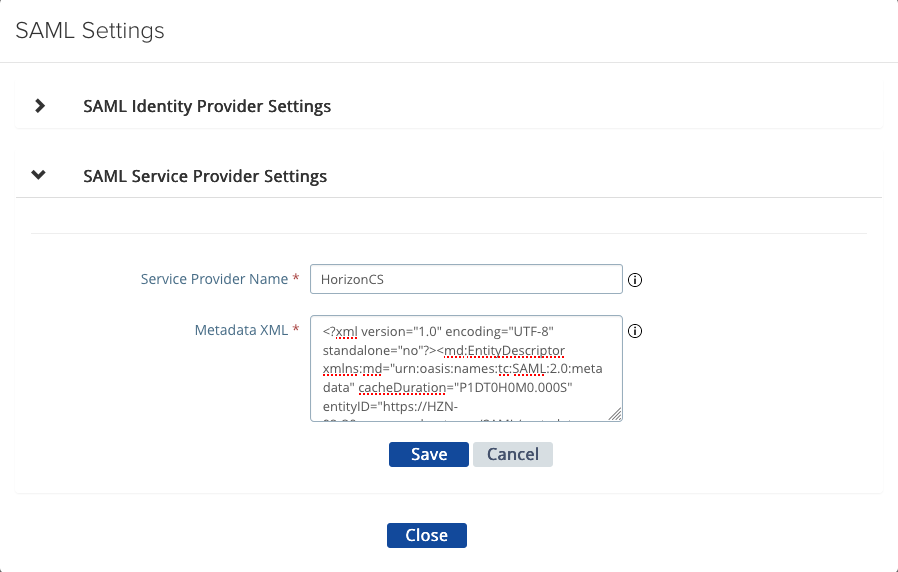 - In the browser, Generate SAML Metadata So That Connection Server Can Be Used as a Service Provider (https://docs.vmware.com/en/VMware-Horizon/2309/horizon-console-administration/GUID-C5D01C30-C84E-4199-92E8-9B1E324C40A5.html)