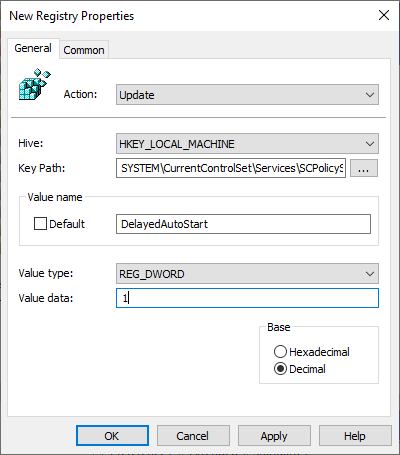 Value name: DelayedAutoStart