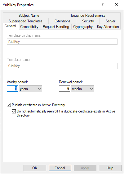 - For Template display name / Template name, we recommend that you choose a short name without spaces such as YubiKey or YubicoSC.