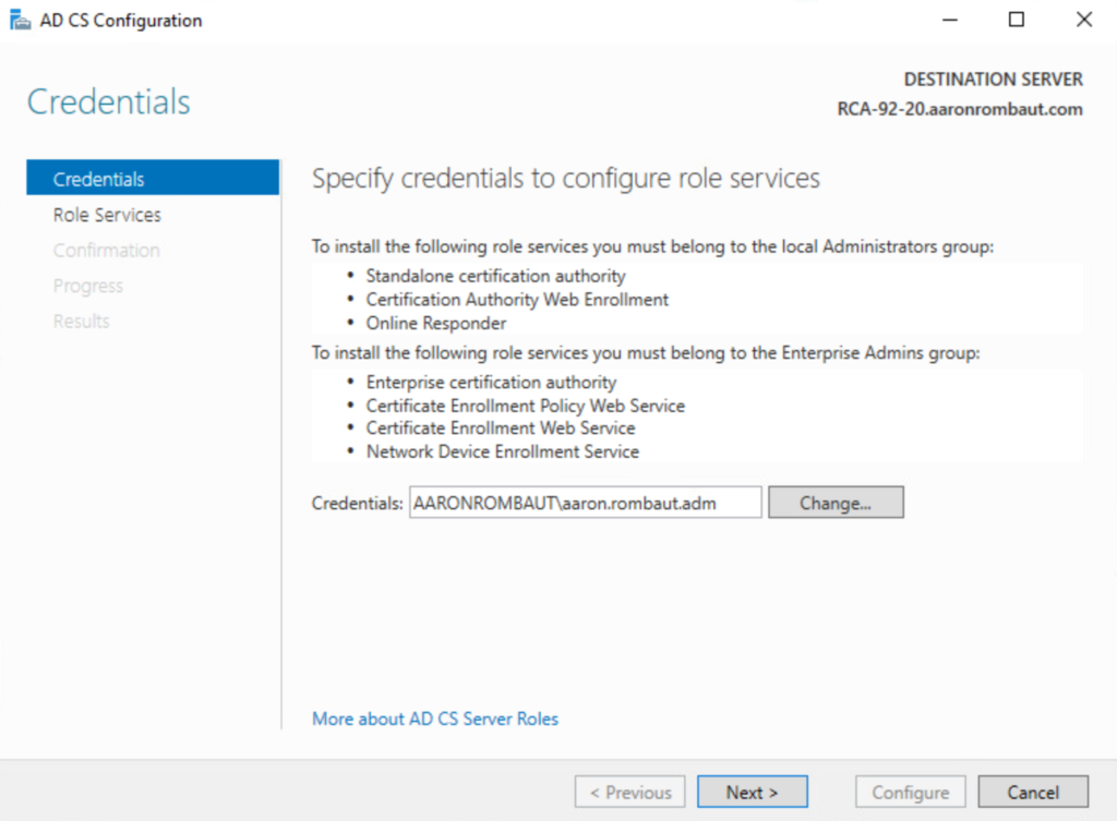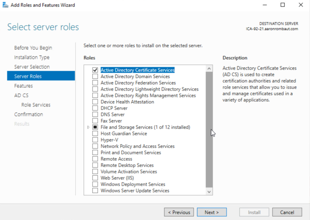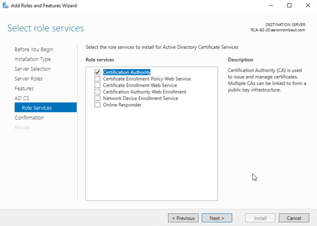 Install the Active Directory Certificate Services Role