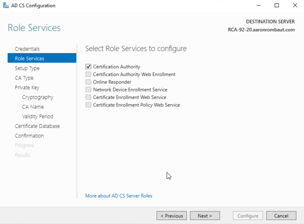 Choose Certification Authority to start configuring.