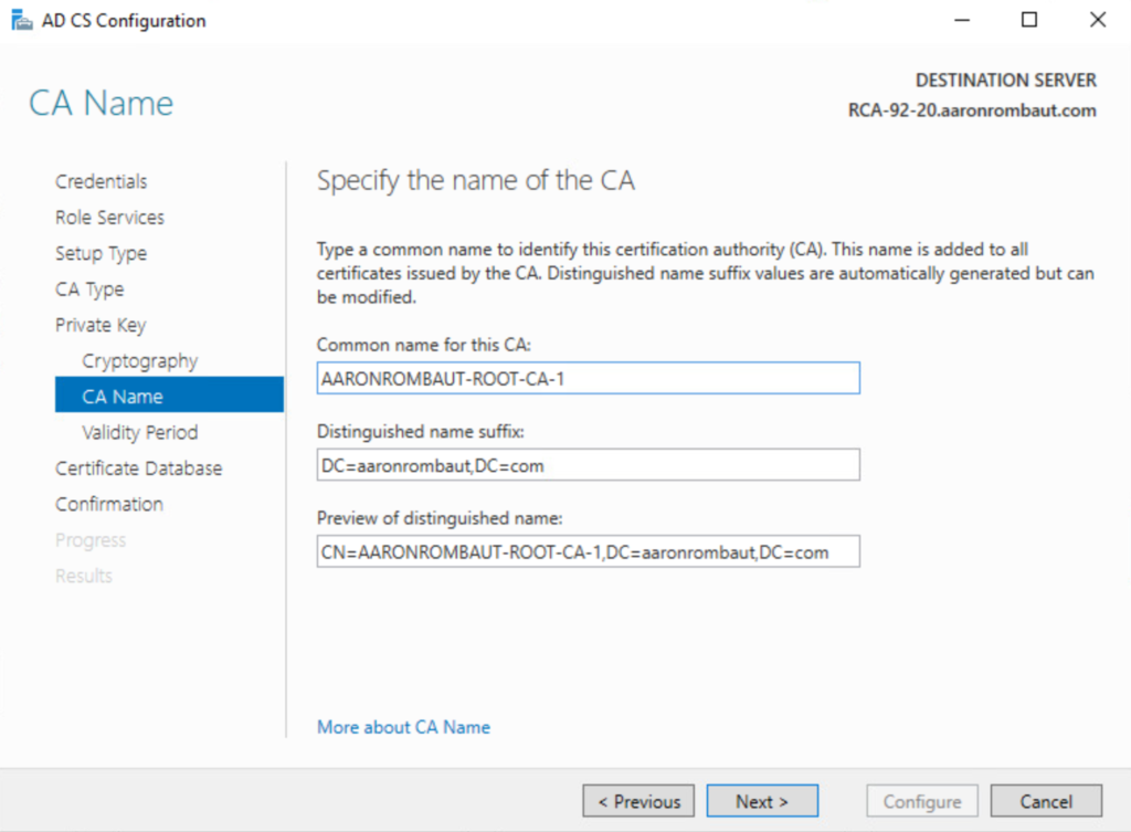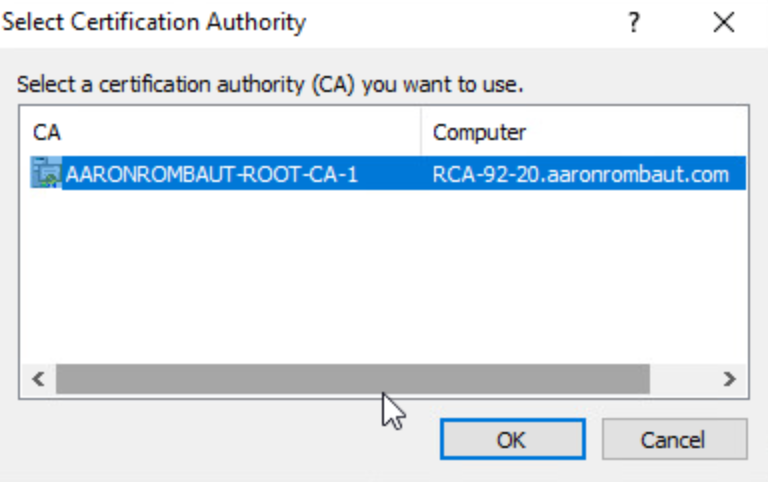 I change the Common name to AARONROMBAUT-ROOT-CA-1.