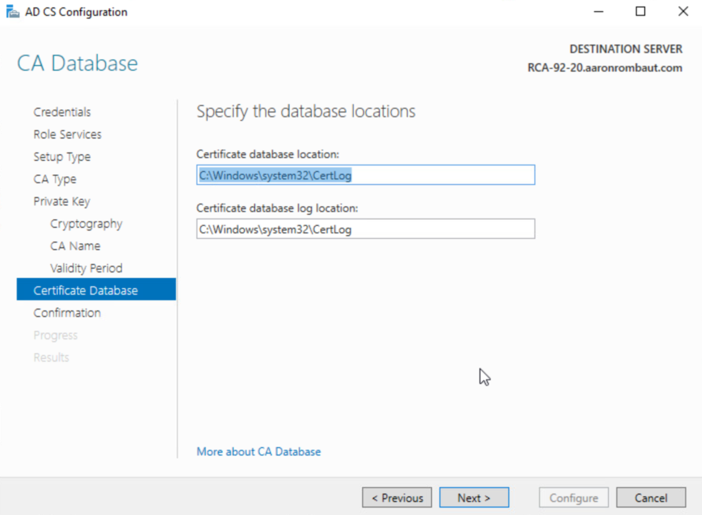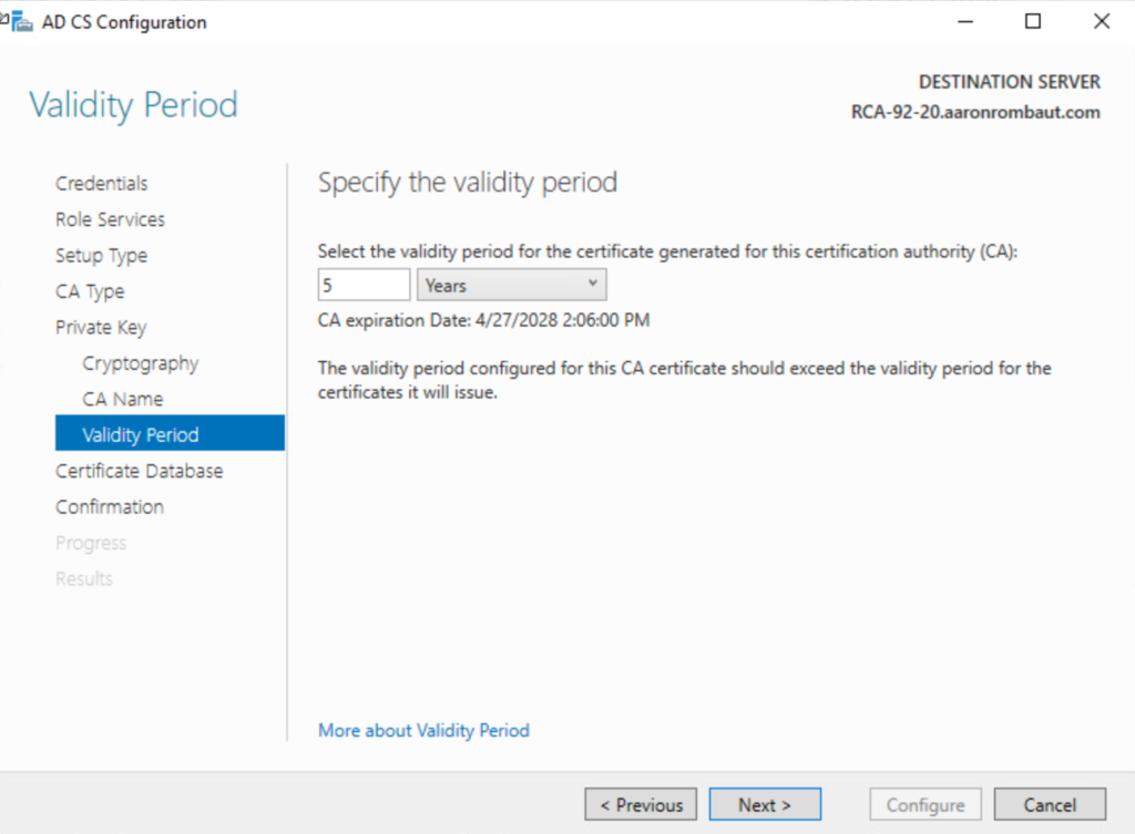 Continue through the configuration. The rest will follow along like configuring the Root CA.