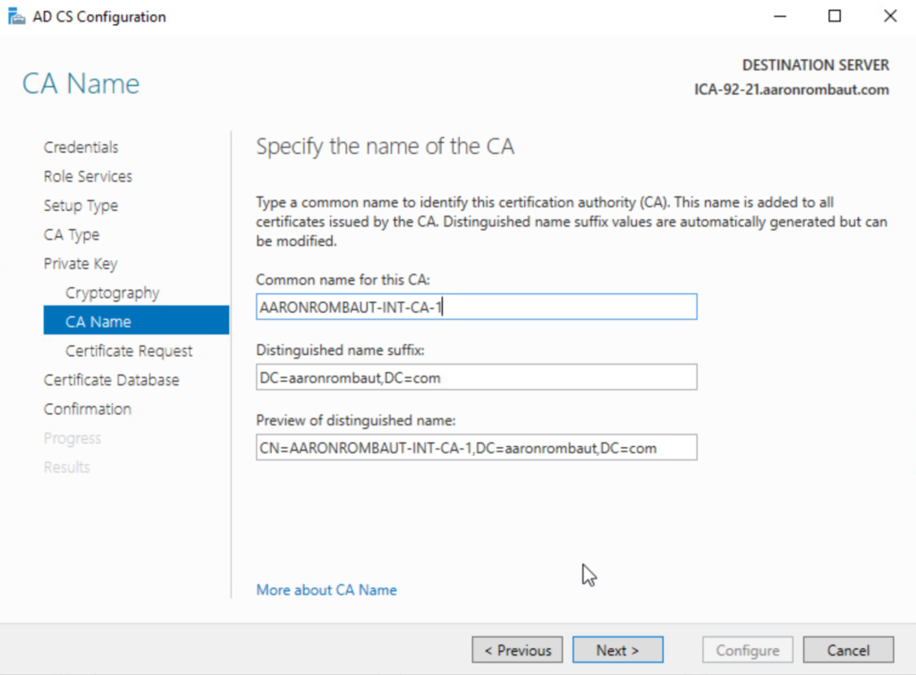 I change the Common Name to AARONROMBAUT-INT-CA-1.