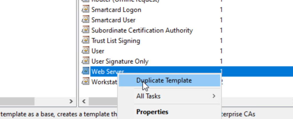 There will now be a new certificate template in the list with the name provided above.