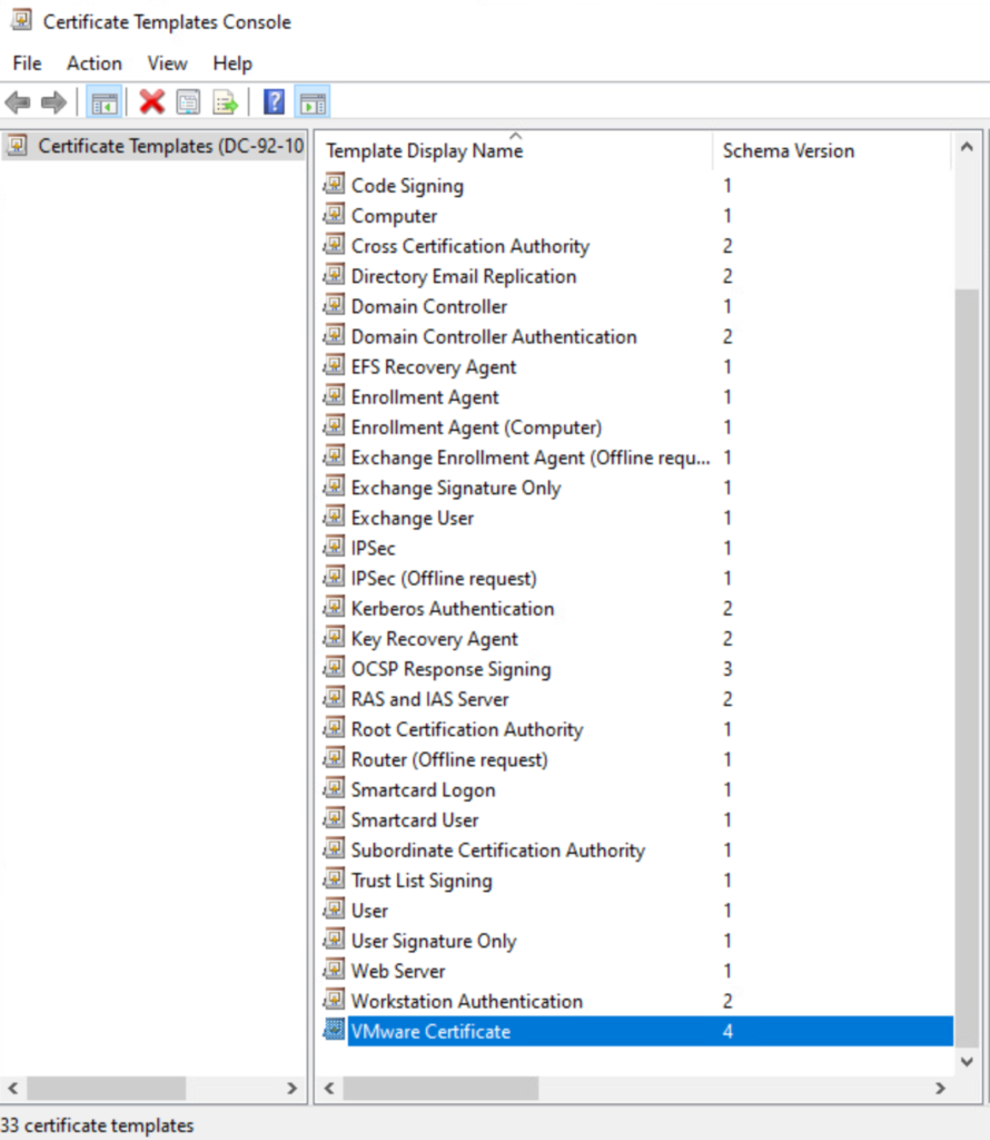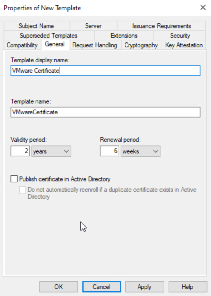 Configure a Certificate Template for VMware