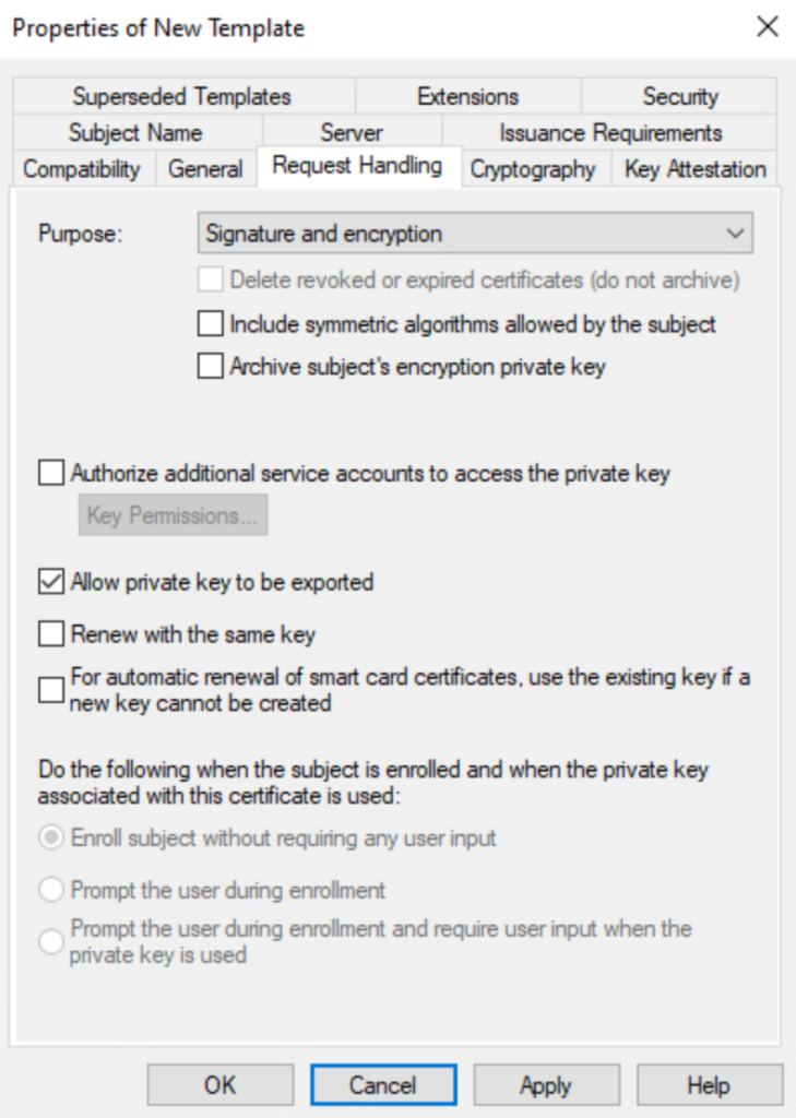 On the Request Handling tab, check Allow private key to be exported.