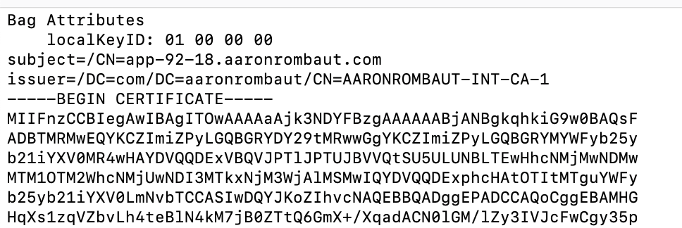 openssl pkcs12 -clcerts -nokeys -in app-92-18.pfx -out app-92-18-clcerts.pem