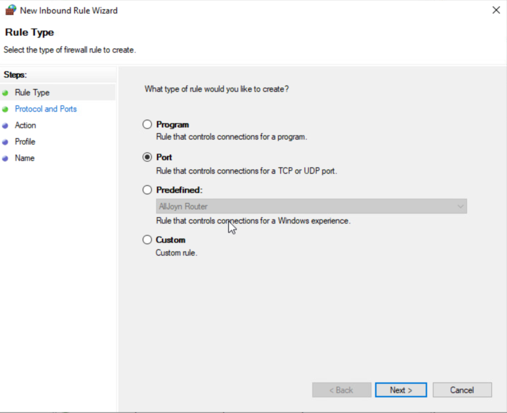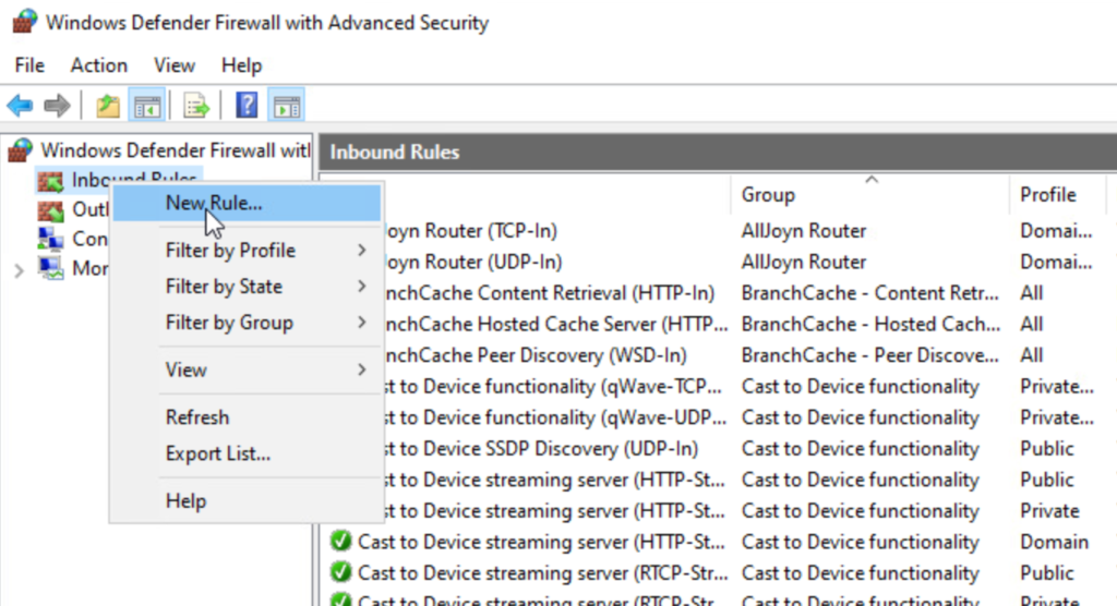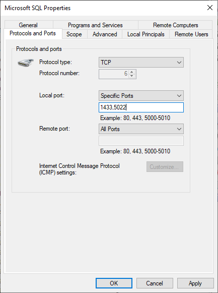 This port needs to be added to the Windows Defender Firewall with Advanced Security (wf.msc) rule we set up earlier. I prefer to add it to this rule to keep them together.