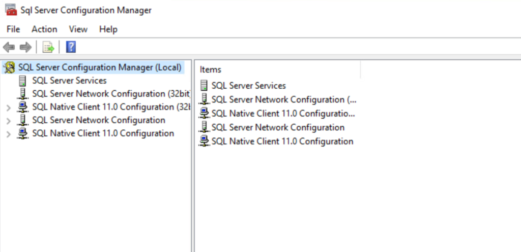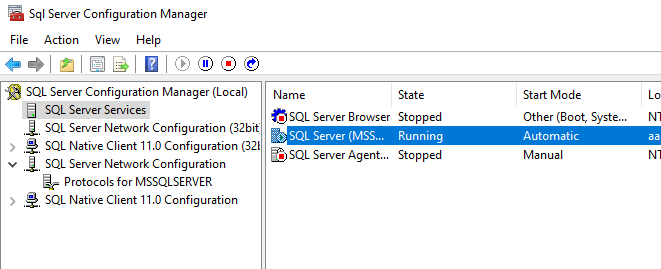 Back in the Sql Server Configuration Manager, select SQL Server Services.