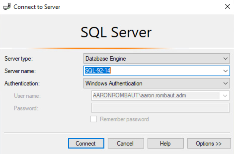 Launch SQL Server Management Studio (SSMS). During the installation, if the SQL Admins Security group was selected for SQL Server administrators, then log in as a user in that group.