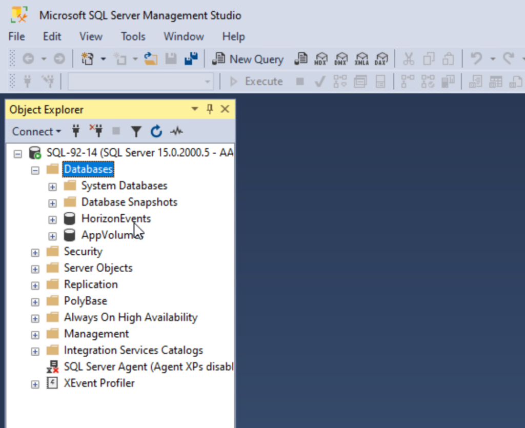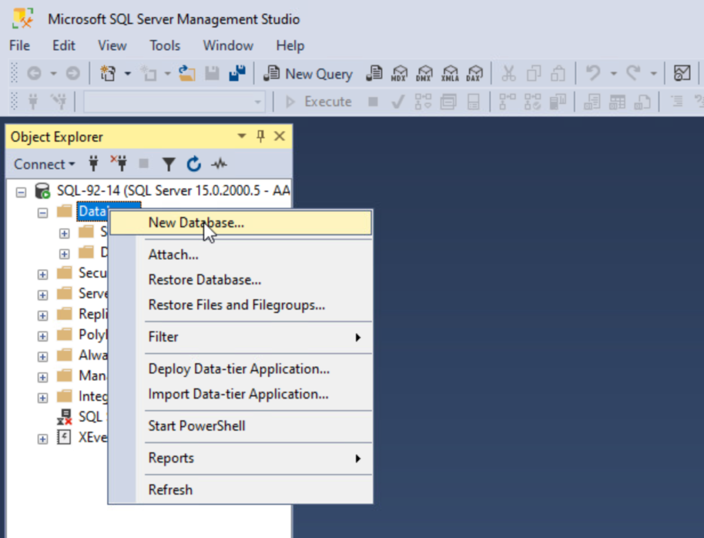 Launch SQL Server Management Studio (SSMS). (See above if you run into issues logging in.)