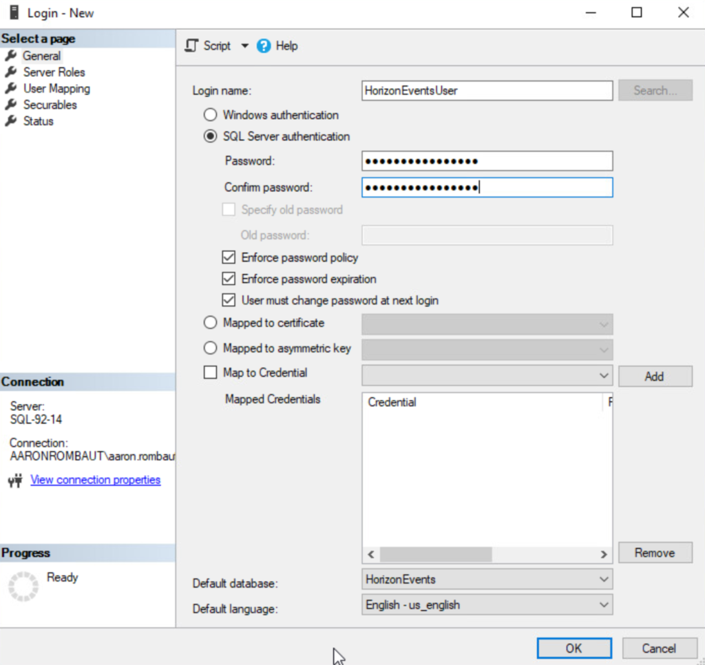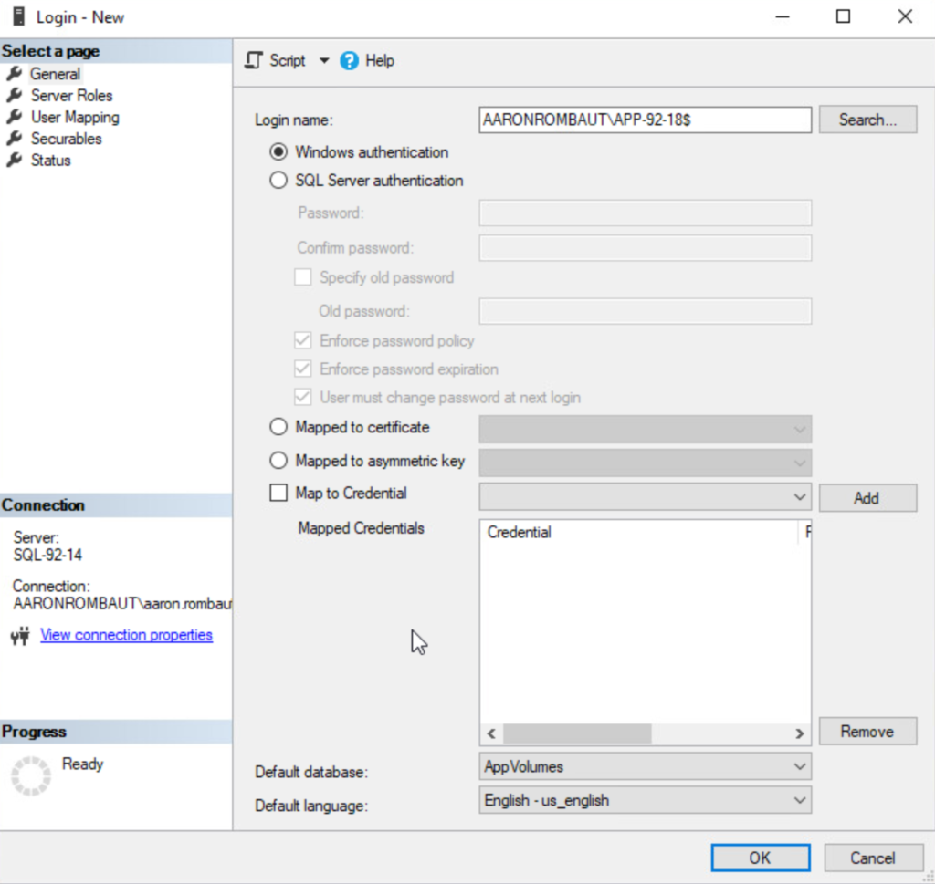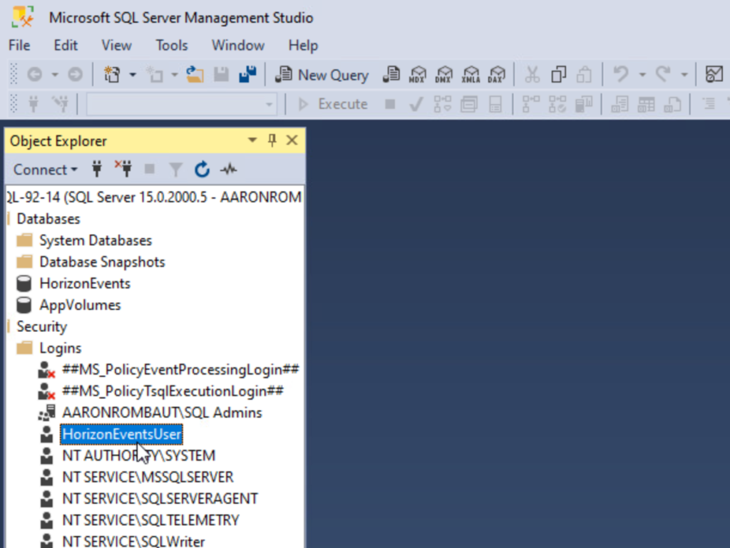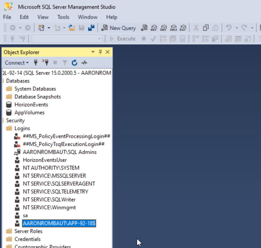 I need two different logins. One will be a local SQL user for VMware Horizon and the other will use a Microsoft Active Directory Computer object.