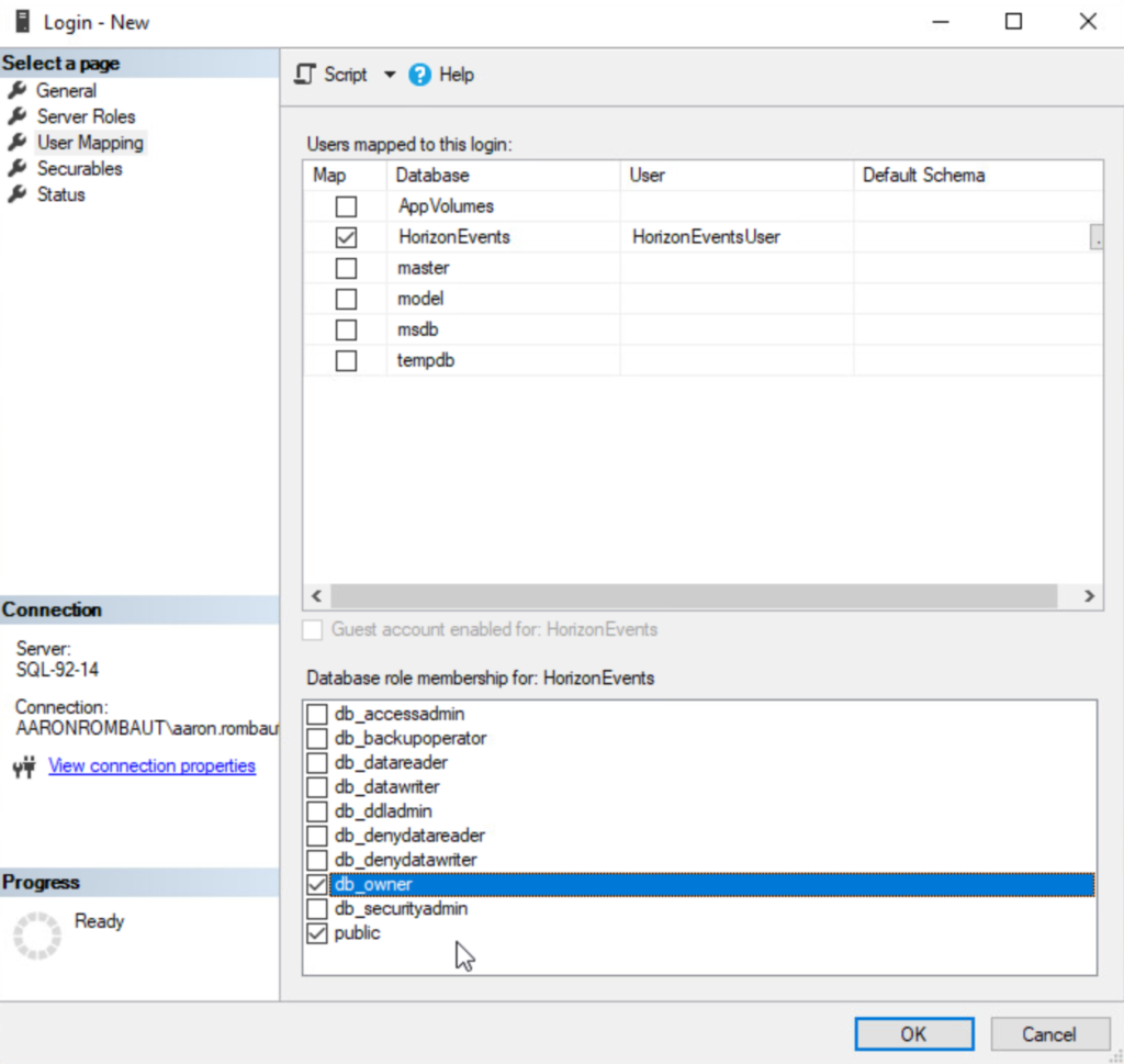 Choose either scenario and repeat, as needed, for any databases created and where logins are needed. Be sure to change the information specific for each database.