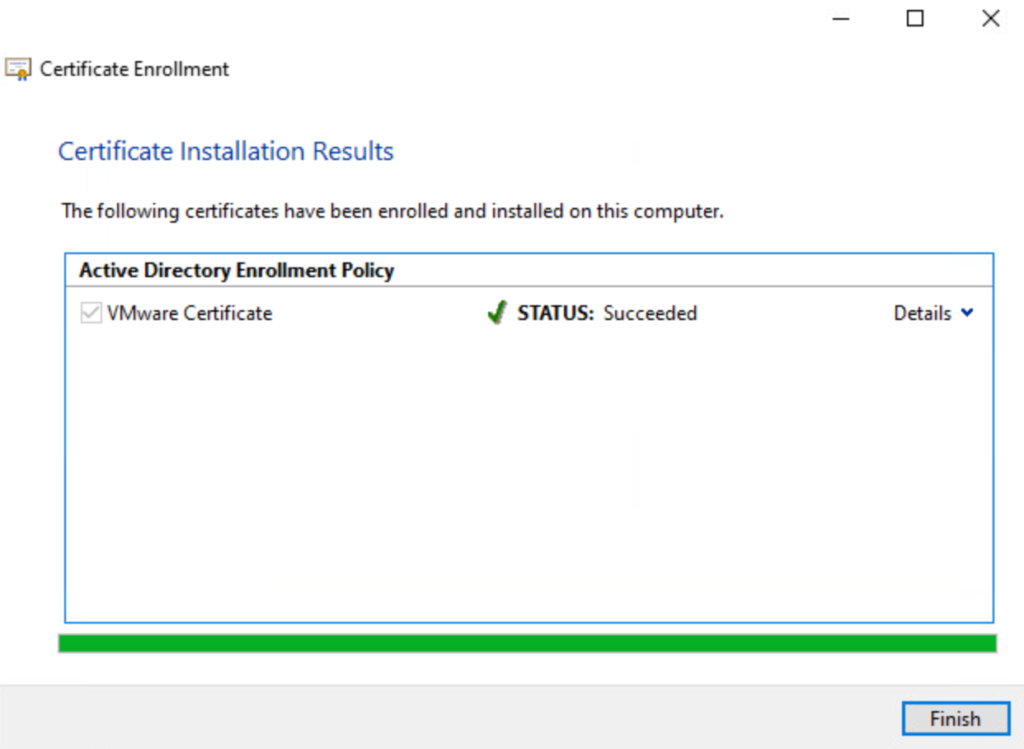 The Private Key is exportable by the template so this window can now be closed. You should be returned to the Request Certificates window and the Enroll button can now be clicked.