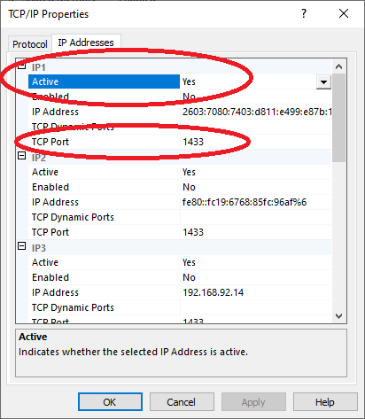 If you followed the other posts on my blog, you might be aware that I have set general Windows Defender Firewall with Advanced Security settings as part of Group Policy. For this server, though, it requires an additional port (TCP 1433) that is standard for Microsoft SQL Server. This can be confirmed in the TCP/IP Properties section of the Sql Server Configuration Manager window.