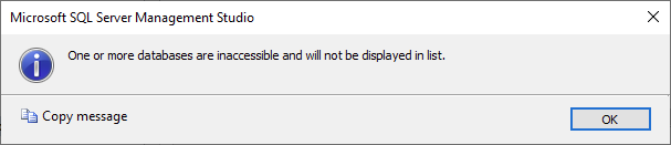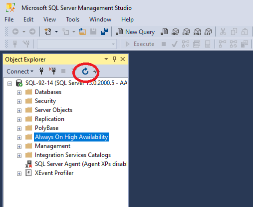 Restart the SQL Server service and return to SSMS. Refresh the Object Explorer.