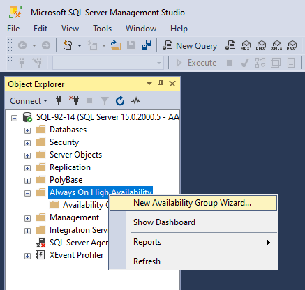 Right-click on Always On High Availability and choose New Availability Group Wizard…