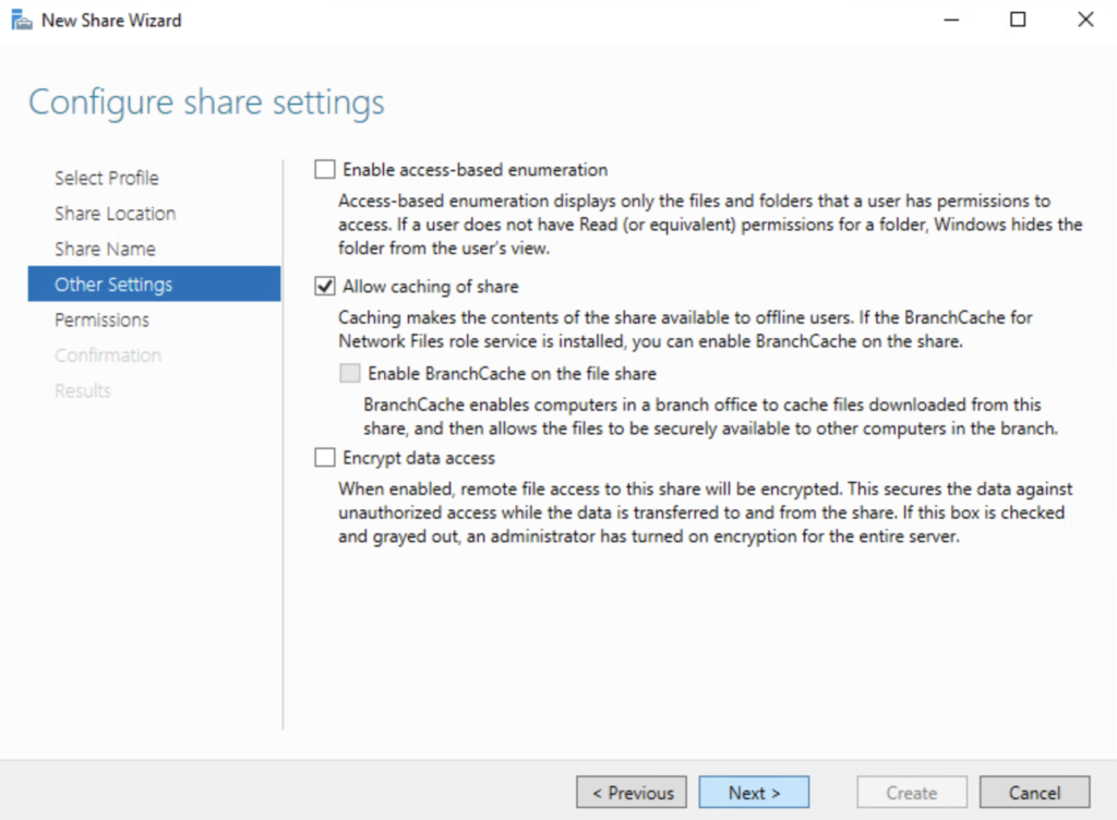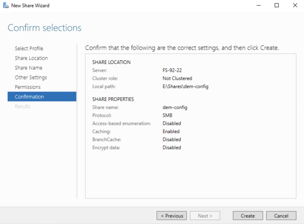 Repeat the wizard for each share that is required. For VMware Dynamic Environment Manager (DEM), there should be at least two shares configured. One is for configuration data and the other is for storing the user’s profile data.
