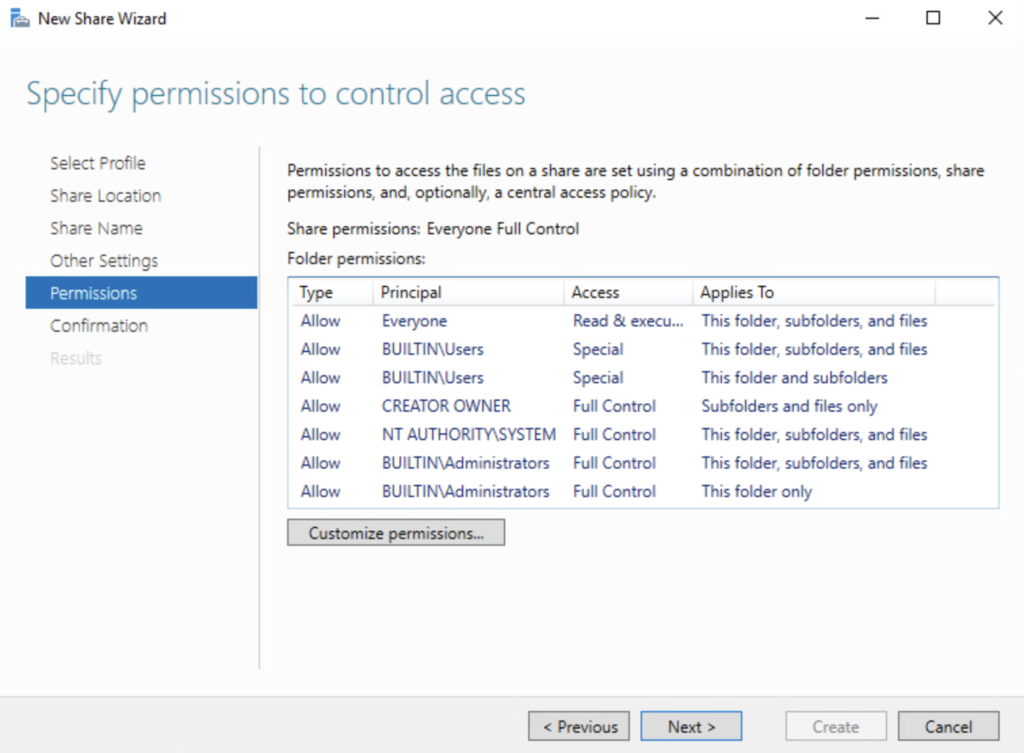 I am going to leave the default permissions here and configure with advanced settings after the wizard completes.