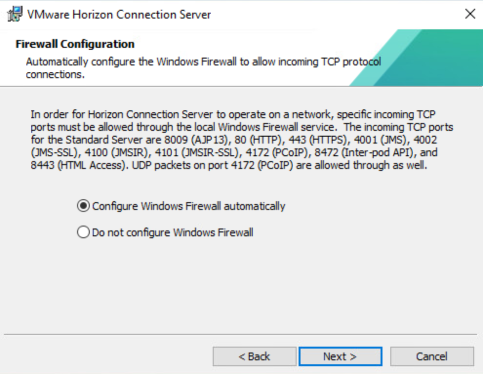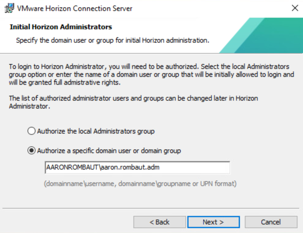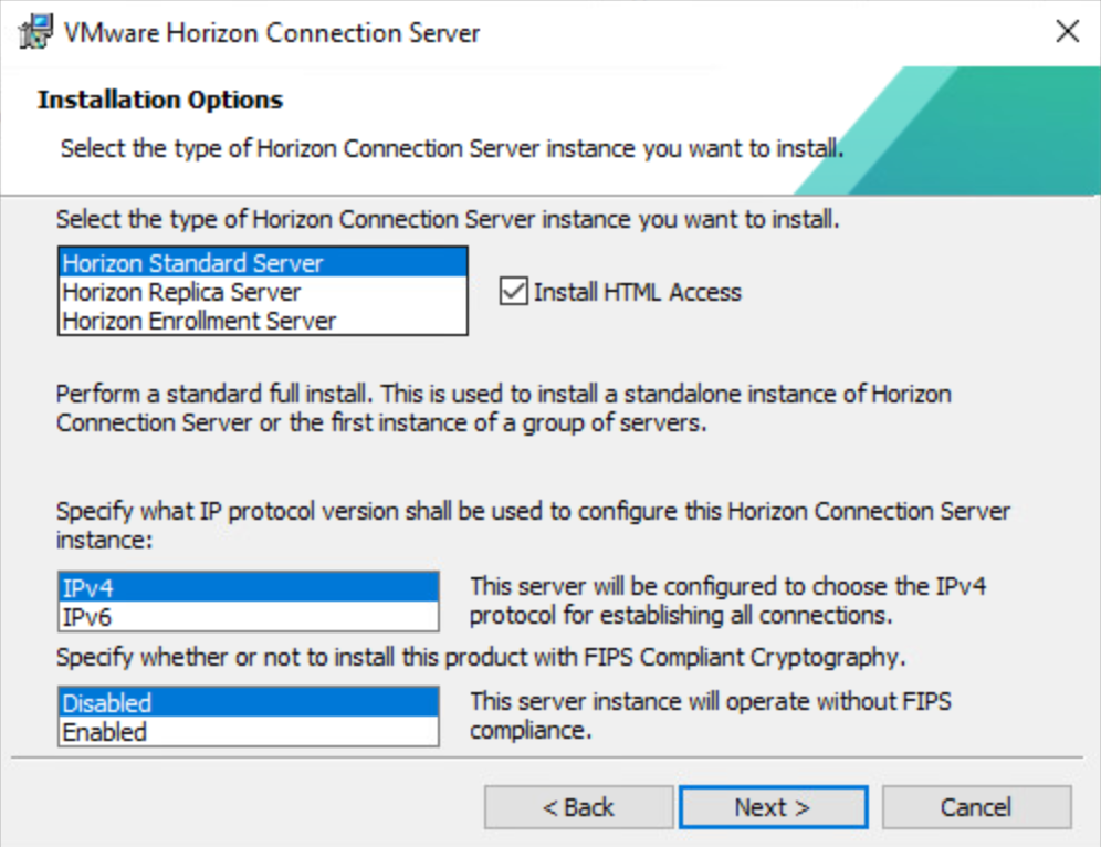 I am not going to install with FIPS enabled in my lab, but wanted to include this for future reference. If using FIPS, every component will need to be enabled for FIPS. If you are installing the VMware Horizon Connection Server and do not have the FIPS option, check to ensure that FIPS is enabled on the Windows Server, the server is rebooted, and then try the installation again.