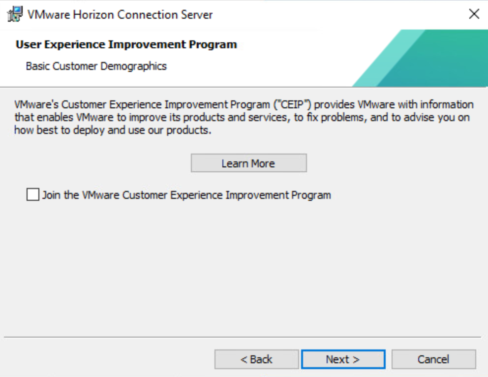 For my lab, I do not want to send any information to VMware, so I uncheck the box.