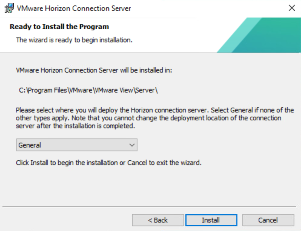 I leave the default of General selected as I am installing in an on-premises lab and not using any cloud providers. Click Install to begin the installation.