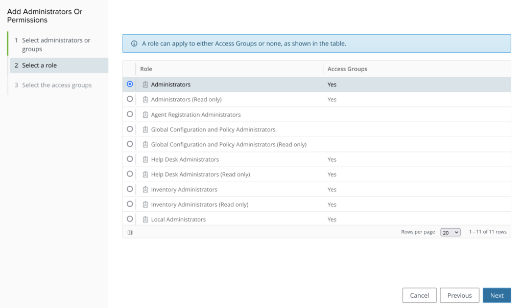 Select the Administrators role and click Next.