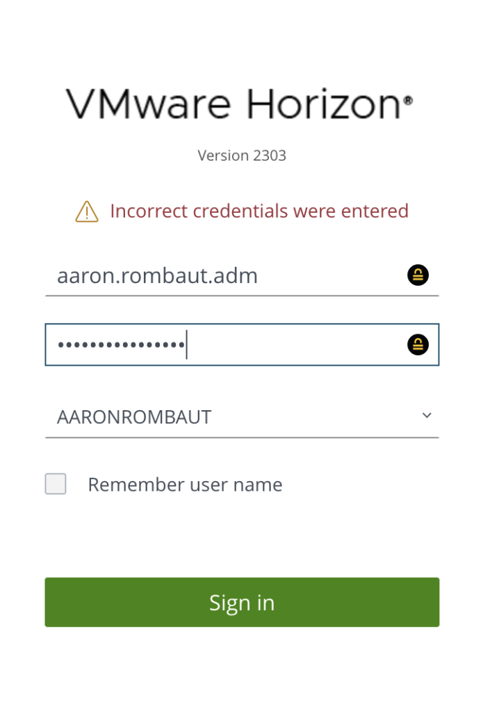 If you remove the user account and you did not yet it to the security group, you will be logged out immediately and when you try to log back in, will receive the Incorrect credentials were entered message as seen below.