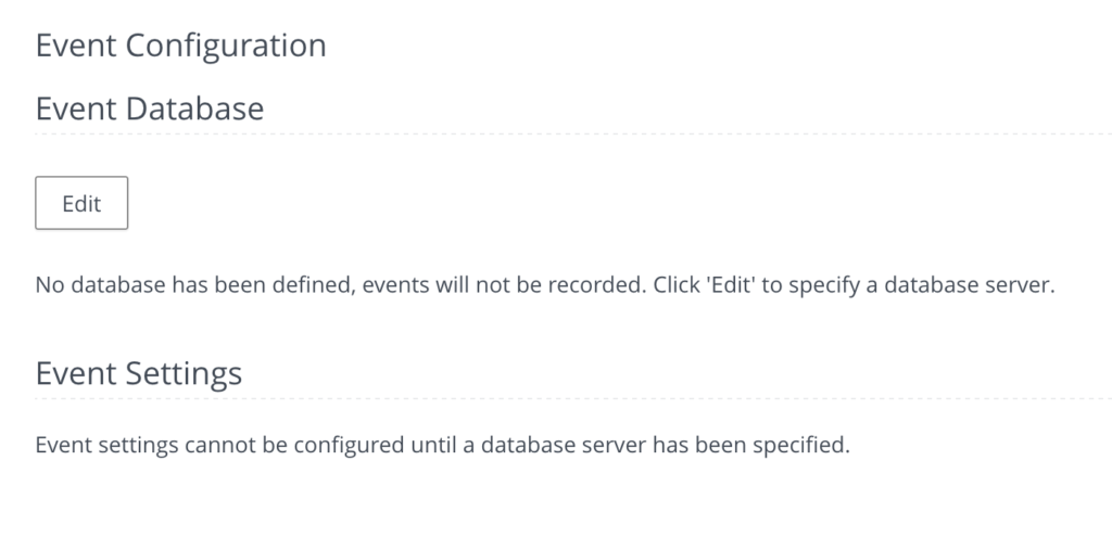 The Event Database configuration will display.